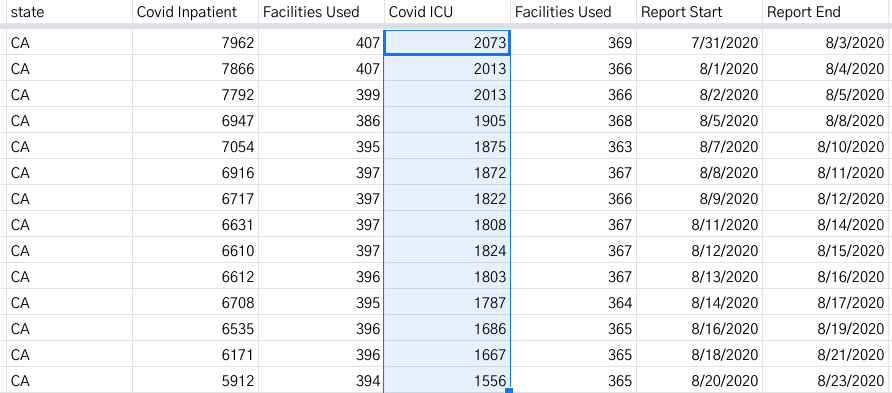 California ICU census July 30-Aug 23
