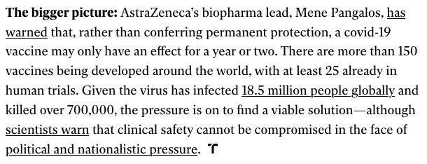 Enkel de uitkomst dat een vaccin voor iedereen permanente bescherming levert, is minder waarschijnlijk geworden. Die werd overigens al niet als waarschijnlijk gezien.