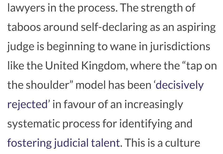 The way we educated and appoint judges is not a static ideal, and needs to adjust in light of evolving expectations and experiments in other jurisdictions.