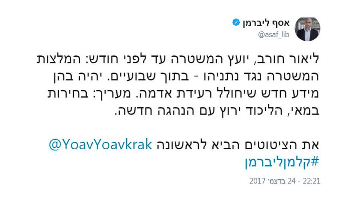 "אלשיך לא היה שורד בתפקיד חצי יום אם הוא לא היה נתפס ע"י חוגים משפיעים ביותר כאדם שיכול במו ידיו להוביל לסוף שלטון נתניהו. זו גם הזדוניות שלו כלפי צ’”