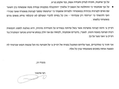 צ' תבעה דיבה - והופ יום לאחר מכן אלשיך העמיד אותה לדין משמעתי על "קשרים" לכאורה >>