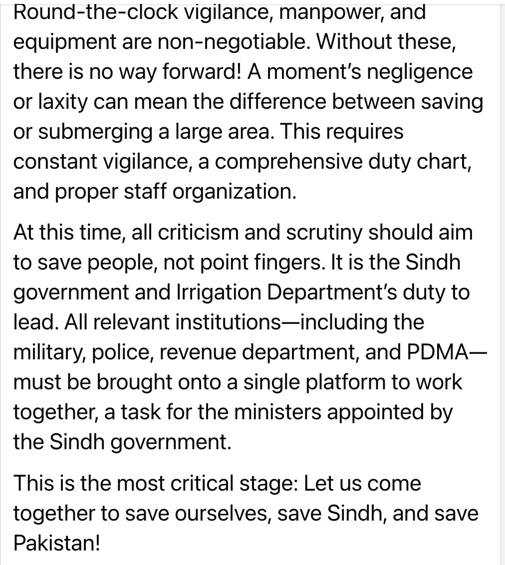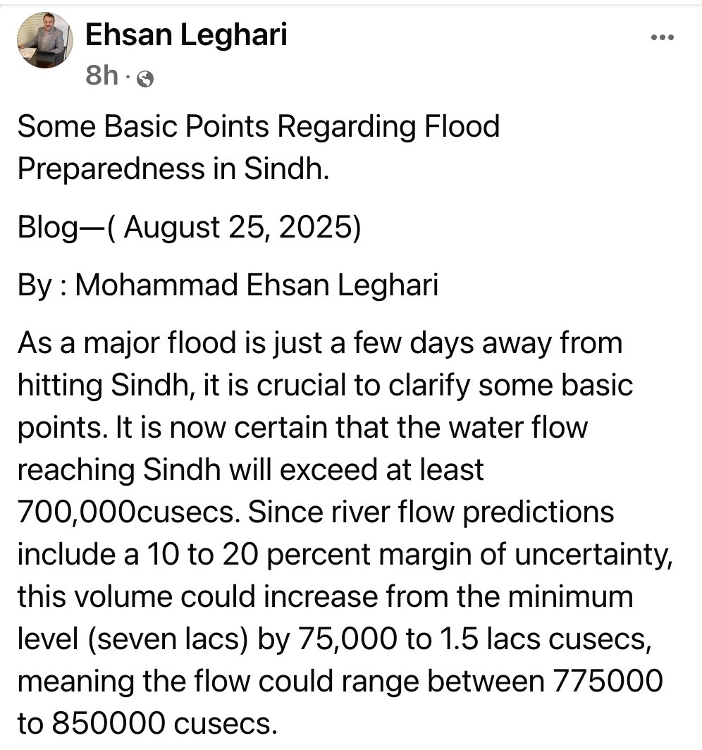 1/3 Forewarned is forarmed. @EhsanLeghari4 's detailed plan to deal with the impending must be read in conjunction with the list of vulnerable points shared by @jamkhanshoro, the Irrigation minister and measures taken to move people out of katcha areas.