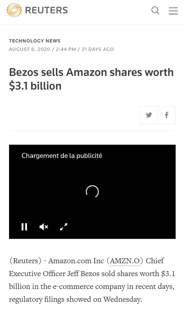 Le patron d'#Amazon vient de vendre pour plus de 3 milliards de $ d'actions.