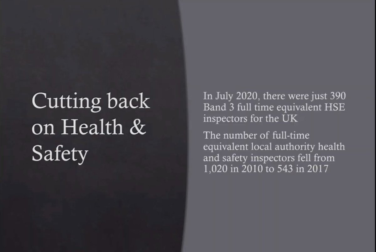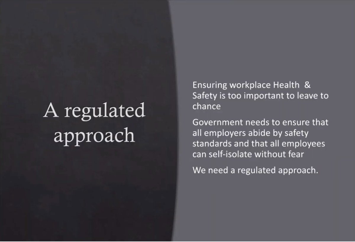 One of the reasons the UK has done badly in this pandemic has been the systematic dismantling of measures such as Health and Safety. We need a clear regulatory framework.