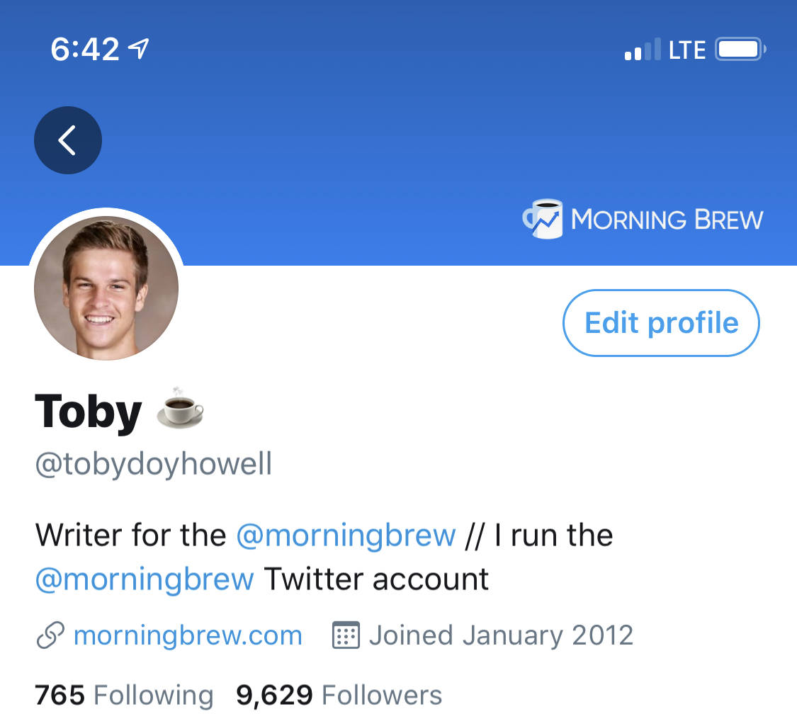in my push for 10K I changed my bio to also include the fact that I run the @MorningBrew twitter account