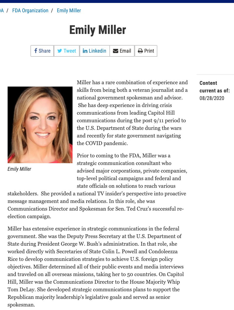 @adamcancryn FDA a few minutes ago made a change to its website, as Miller’s next steps remain in flux: Her bio is still online, but her title was just scrubbed.