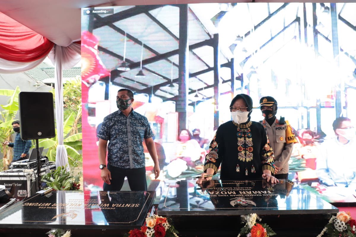 Hari ini (29/08) Wali Kota Surabaya Tri Rismaharini meresmikan Taman Mozaik dan Sentra Wisata Kuliner (SWK) Wiyung lewat sambungan video call ImageImage