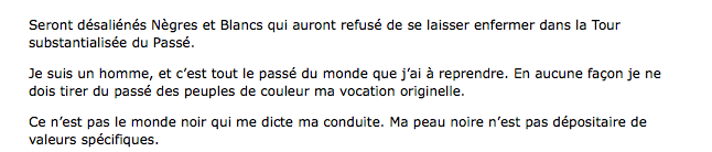 (Extraits de Franz Fanon, peau noire, masques blancs, 1952)