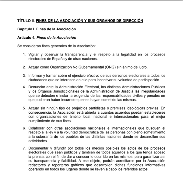 Pilar Baselga es miembro de la Asociación Elecciones Transparentes, asociación que según sus estatutos, quiere vigilar y observar la transparencia de los procesos electorales de España y otras naciones