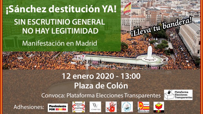 Y son convocantes de esta manifestación que se celebró en Madrid, también en Colón, pidiendo la destitución de Pedro Sanchez y el escrutinio general. Y con unas adhesiones interesantes: