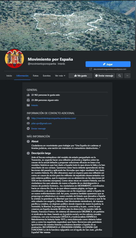 Nos metemos en el más grande, y ya podéis ver los contenidos que se comparten, especialmente se le da impulso a una manifestación que va a tener lugar en Madrid este domingo, incluso ofrecen buses desde varios sitios para acudir a ella.
