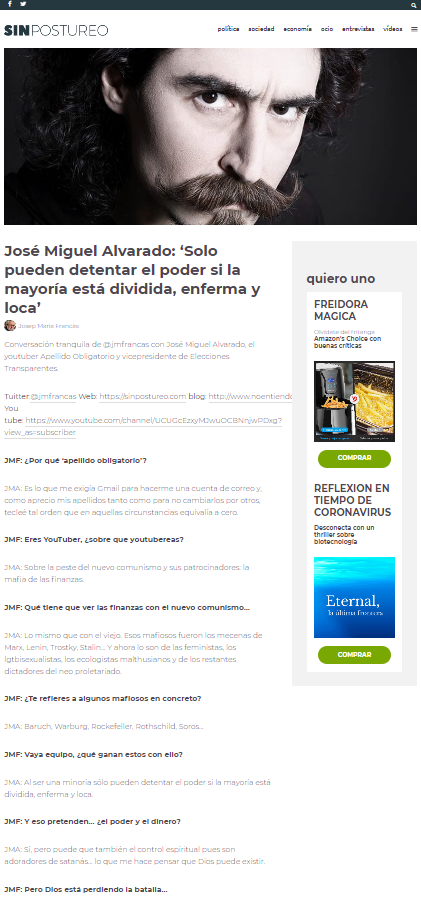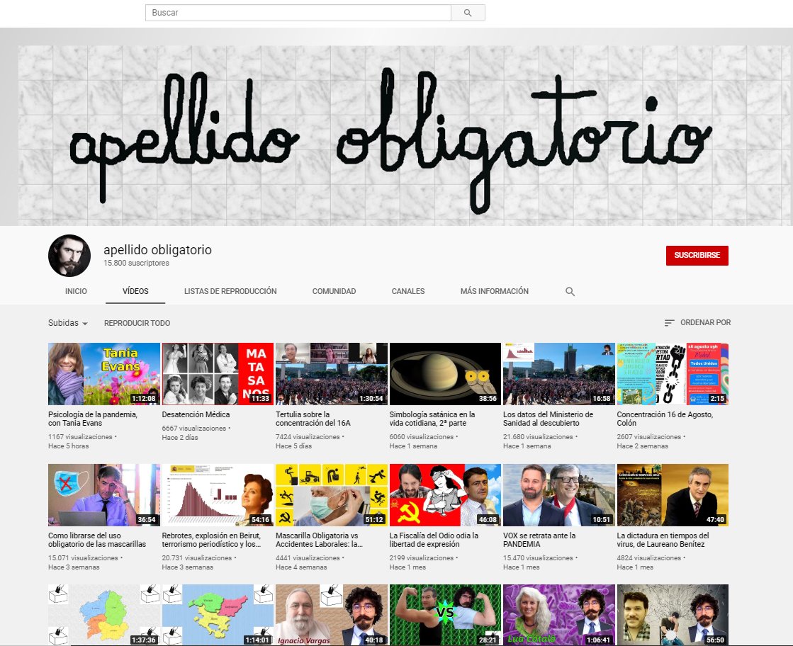 El presidente de esta asociación, como indicaba su página web, es Jose Miguel Alvaredo, conocido en Youtube bajo el nombre de "Apellido Obligatorio", y como veis su contenido últimamente se centra en los movimientos negacionistas