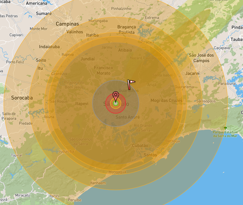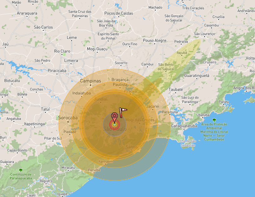 A onda de radiação chegaria a São Lourenço, uma cidade a 226km a leste do Vale do Anhangabaú.
