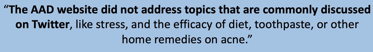 tl;dr ➡️ there's a lot of bogus derm content on twitter, but the most popular misinformation often isn't addressed by the @AADskin's tweets or online patient info articles.