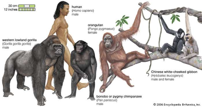 Exemplo de primatas da Parvordem Catarrhini . Retirado de britannica.com/animal/catarrh…
