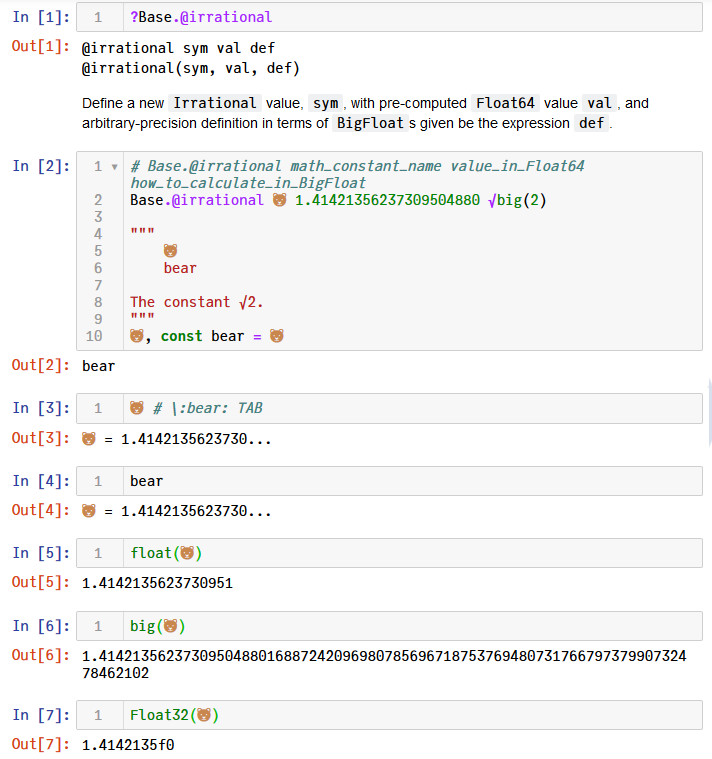 Base.@irrational 🐻 1.41421356237309504880 √big(2)