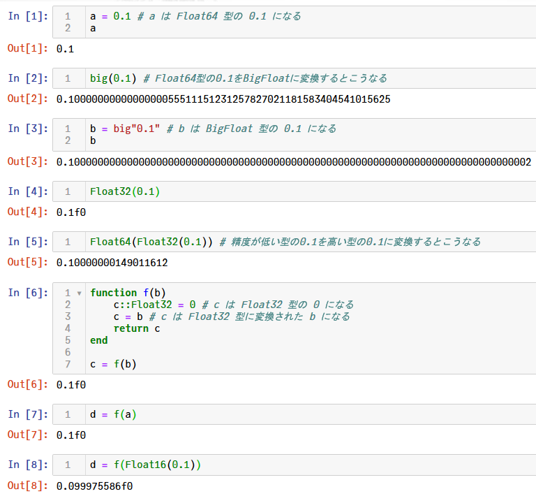 しかし、浮動小数点数が相対的に精度が高い浮動小数点数に変換される場合には無駄な誤差が発生するので注意が必要。