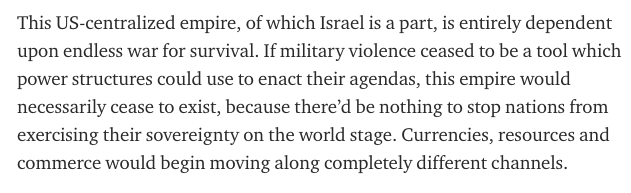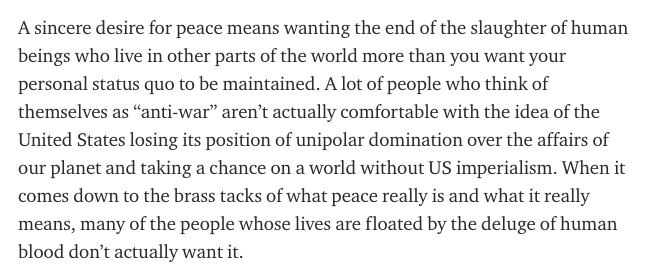 "A nation that cannot exist without ceaseless war is not actually a nation at all: it’s an ongoing military operation with some suburbs and schools mixed in."