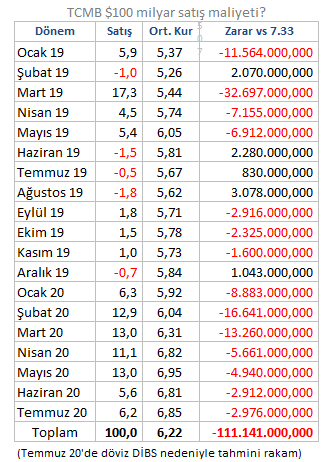 MB Ocak 2019- Temmuz 2020 arası $100 milyar sattı diyoruz. Amacı kuru düşürmek (kibarca "kurdaki dalgaları önlemek"). Peki bunun maliyeti ne? Zorlama da olsa bir hesap çıkaralım: