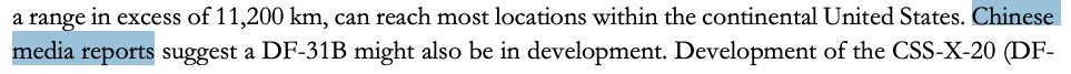 Based on the attribution to “media reports” and no apparent independent US intelligence assessment backing their existence, my take on the DF-31B and DF-5C is a solid 🤷🏽‍♂️.