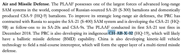 Very weird to see a WSSIC temporary designator show up in the DoD PRC military power report. AFAIK, this is the first time we’ve seen this for the HQ-19.