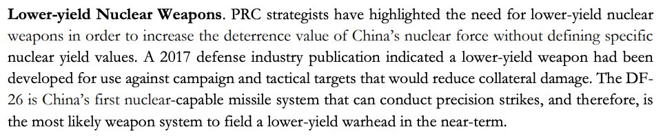 This reasoning about the DF-26 being the most likely receptacle for a future potential lower-yield warhead is interesting. But DF-21D may similarly be eligible (ASBMs are inherently required to be precise).