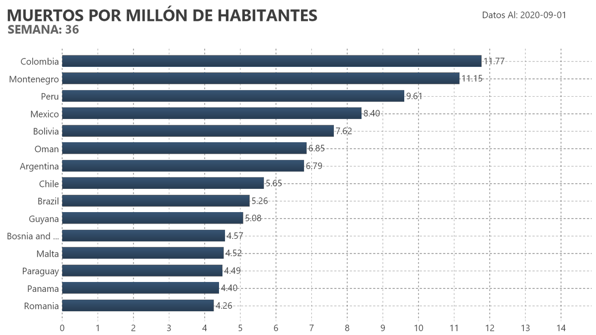 Los países que han sufrido la mayor cantidad de pérdidas humanas son USA seguido de Brasil. México está en el lugar 4 de la métrica.