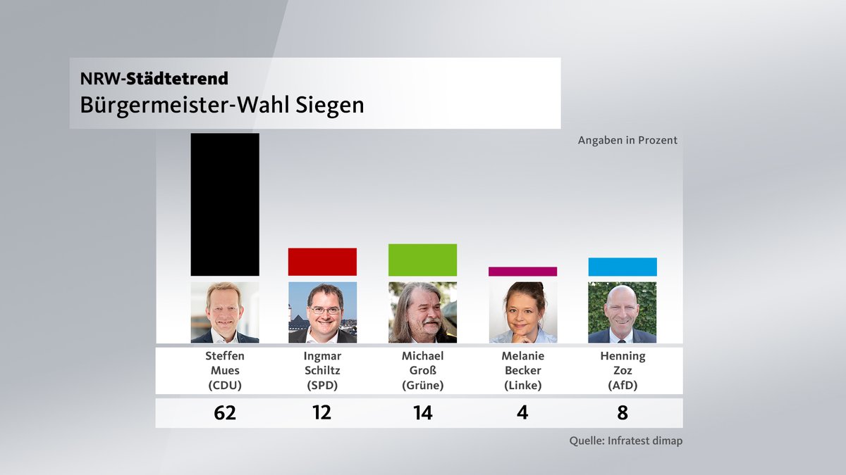 Noch elf Tage bis zur Kommunalwahl - wir wollten wissen: Wer schafft es in die Stadträte? Wer hat die besten Chancen, Bürgermeister zu werden? Die Ergebnisse unserer exklusiven NRW-Vorwahlumfrage jetzt LIVE: