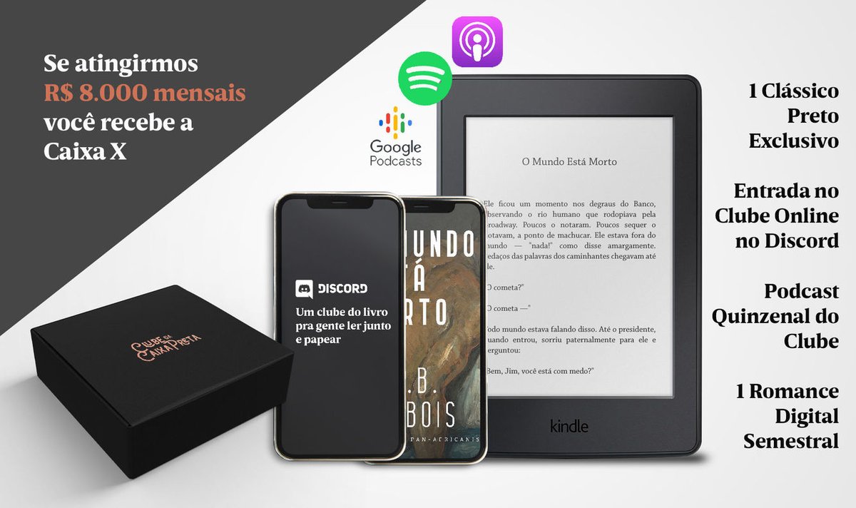 O Clube tem algumas metas estendidas. A mais alta delas, a de 8 mil reais, prevê como recompensas um clássico preto exclusivo, entrada no clube online no Discord, podcast quinzenal do Clube e um romance digital semestral.