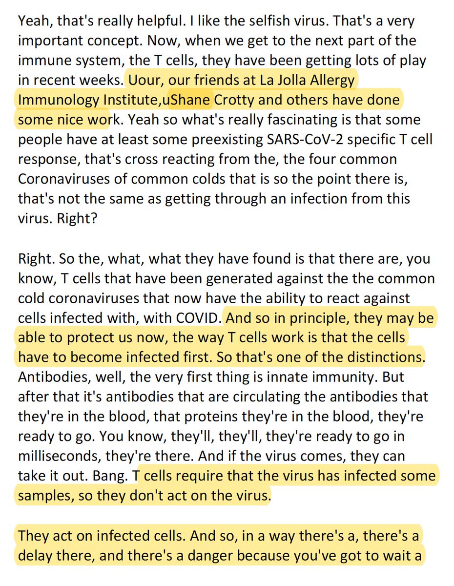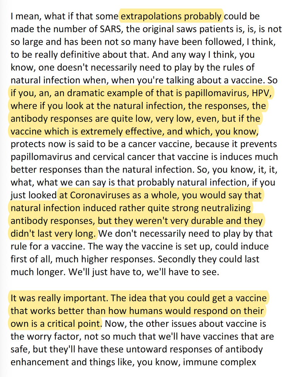 "I think probably...is best...combine a good antibody response with a good T cell response that gives the greatest possibility for controlling the infection." 9/x