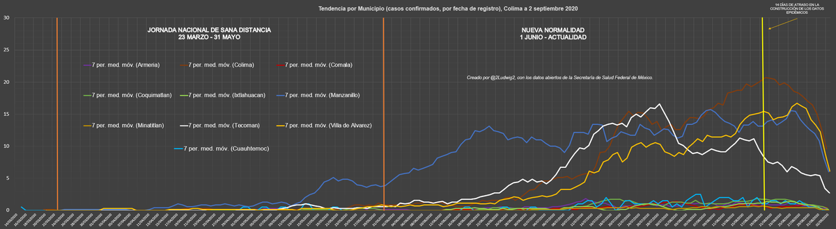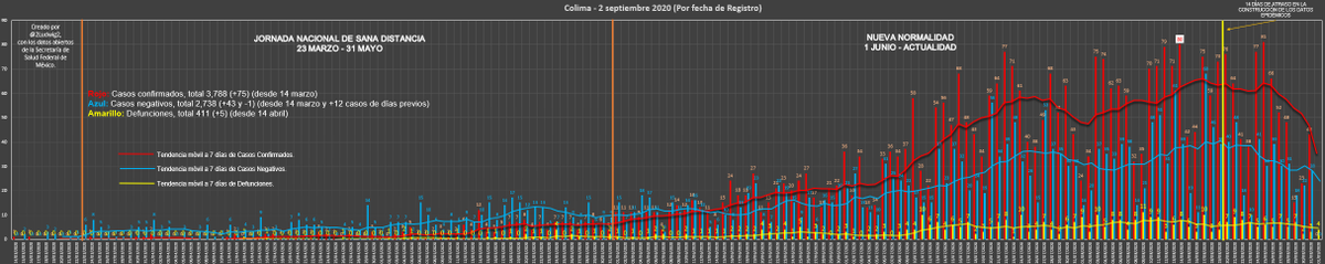 Colima, total 764 (+13 y -1)