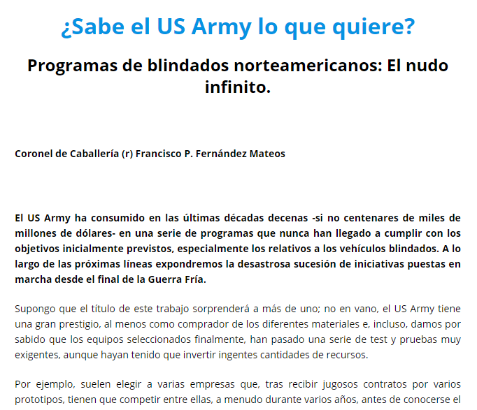 10) Y así, hasta donde se quiera, pues el #USArmy es como es, un auténtico agujero negro de fondos y de proyectos que no siempre terminan bien, como demuestra el coronel Fernández Mateos en nuestro último número: