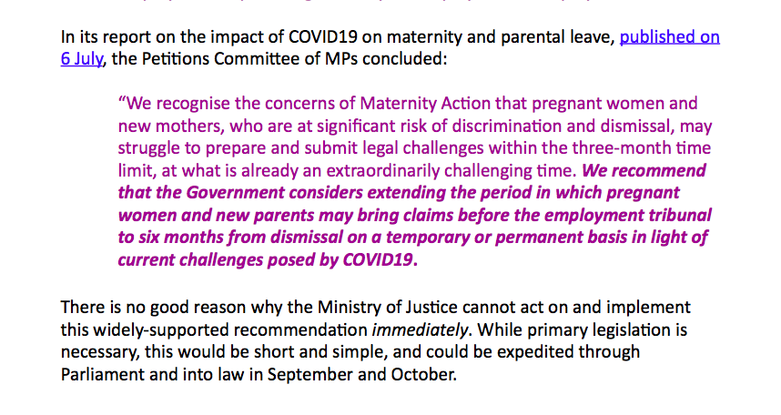 Clear COVID19-specific guidance to employers on how to treat pregnant women & new parents in their workforce.