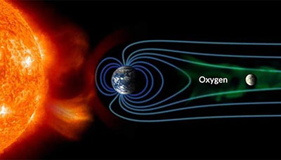 A pesar de que la Luna carece de atmósfera, presenta trazas de oxígeno que podrían haber viajado en la cola magnética de la Tierra, la magnetocola, hasta nuestro satélite.