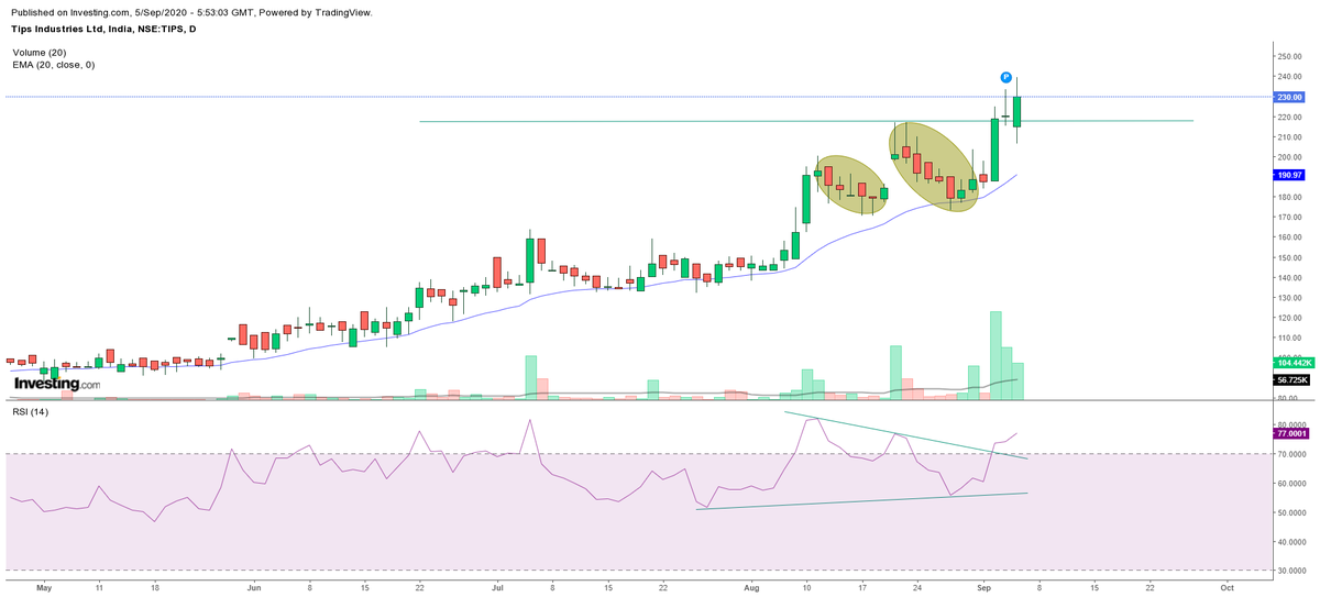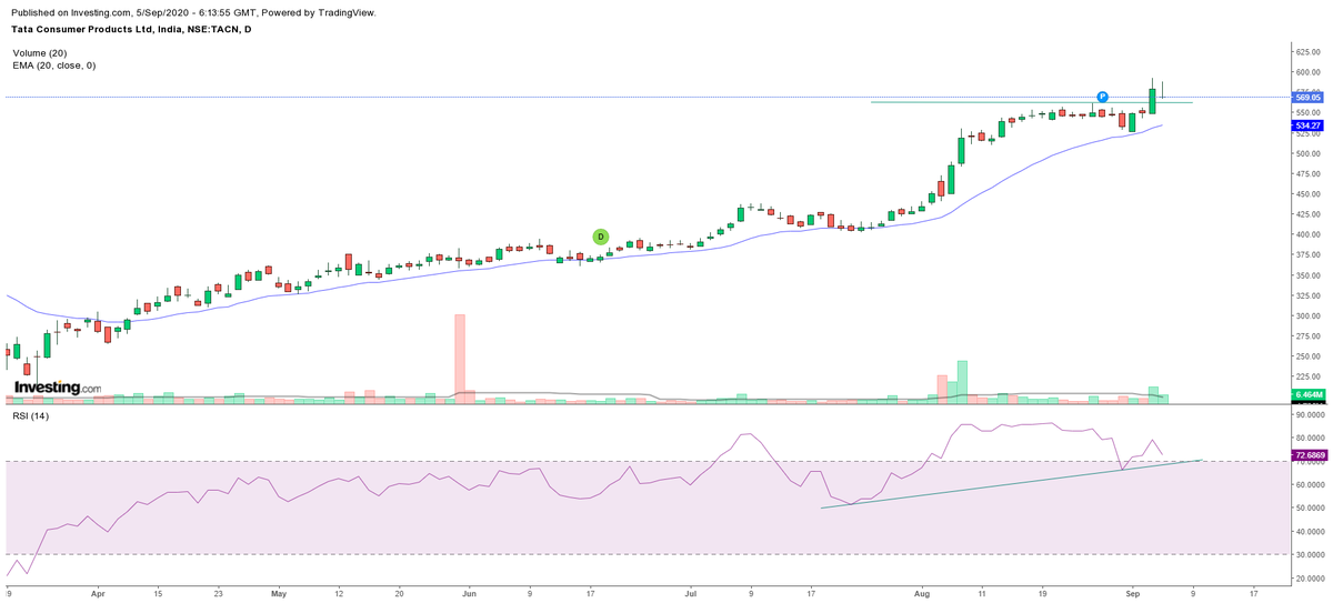 Takes support on 20 EMA.