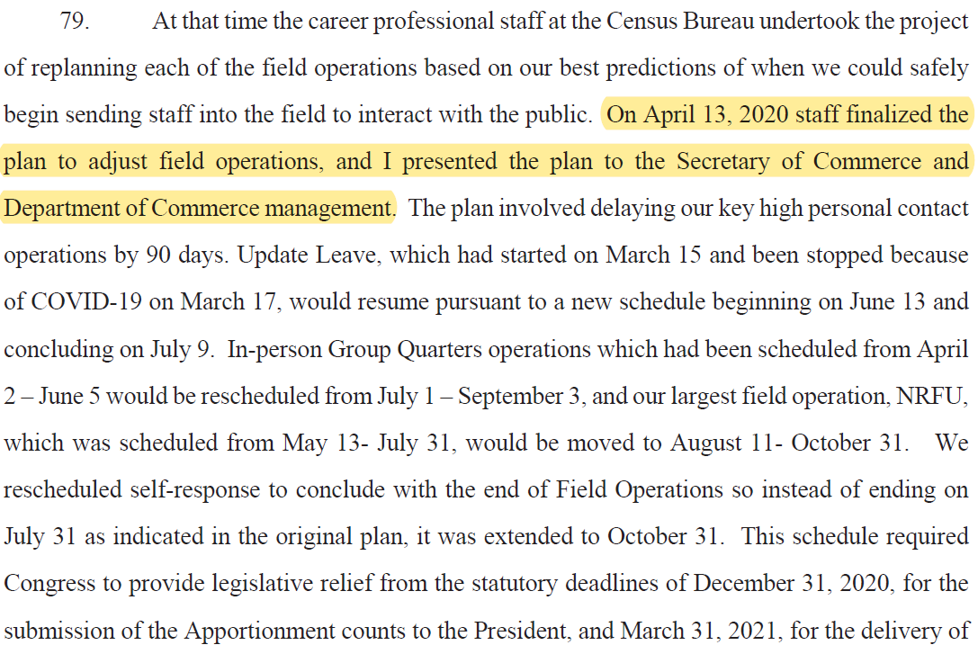 - How & exactly when did it become "apparent" to Census Bureau leaders that Congress was "not likely" to grant requested statutory relief"?