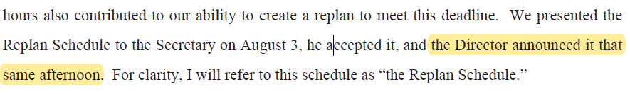 7/29: Fontenot informed of directive for a plan by 8/3