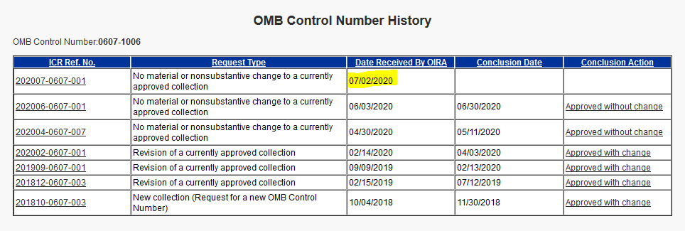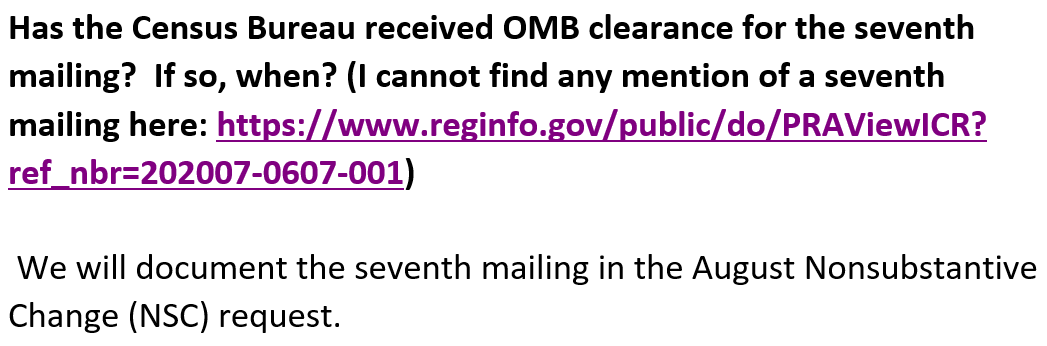 But date of latest submission on OMB's Reginfo.gov page for #2020Census is 7/2.