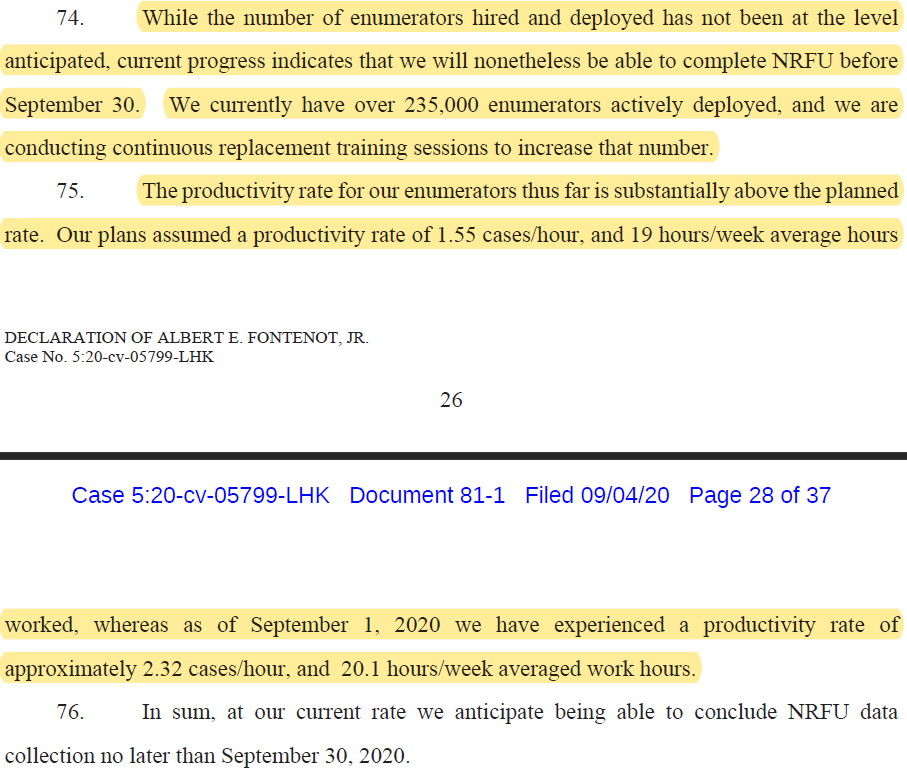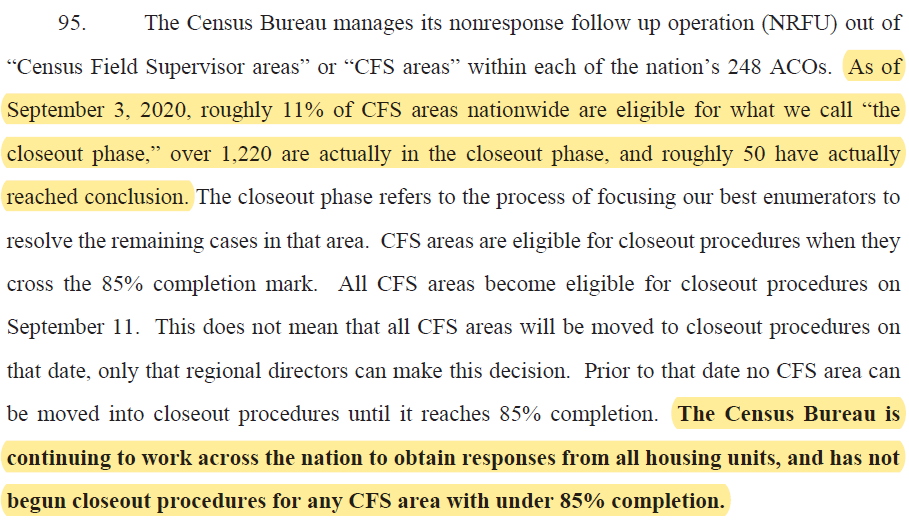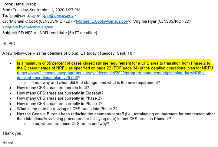 - Why has the Census Bureau set end dates or closeout dates for certain areas -- such as San Diego as I've reported -- that haven't yet closed 85% of door-knocking cases? How does the bureau project that far out?