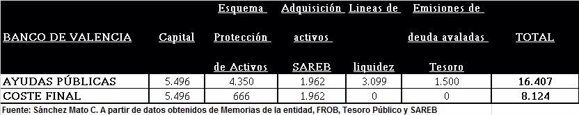 El Banco de Valencia recibió ayudas públicas por importe de 16.407 millones de €.