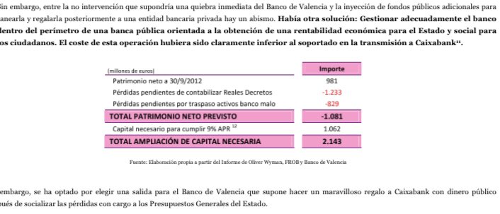 ¿Había alternativa a sanear el Banco de Valencia, vendérselo a Caixa por 1 euro y regalarle más de 4.000 millones a esta entidad?