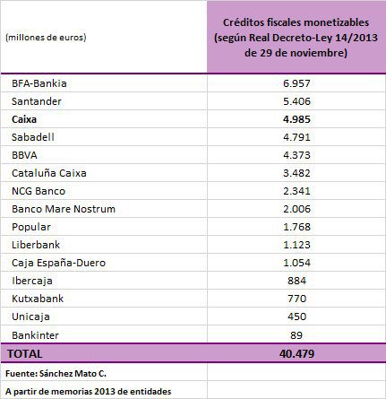 Y no olvidemos otro gran favor del que se ha beneficiado Caixa, como el resto de entidades bancarias, son los créditos fiscales.