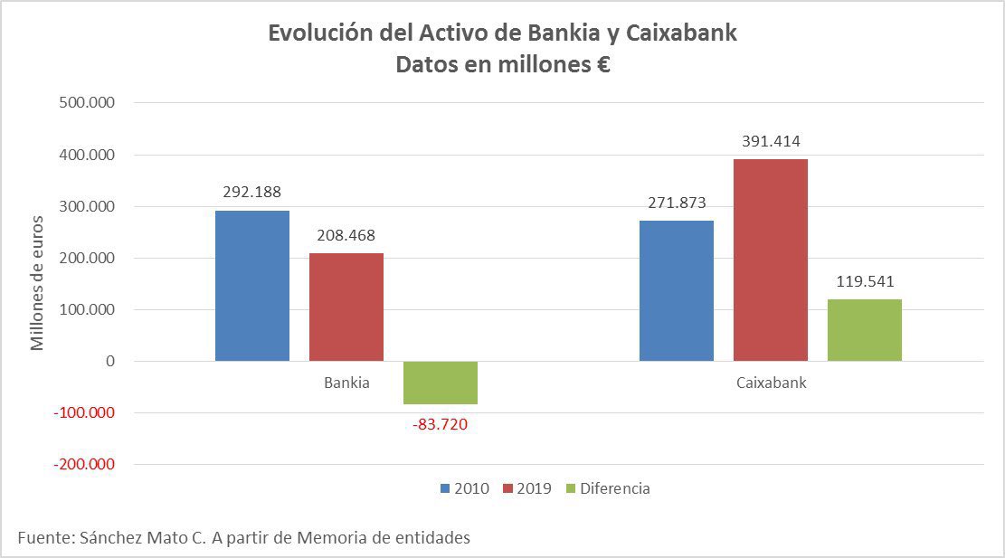 Porque en esta última década la evolución del activo de Bankia y Caixabank ha sido muy diferente.