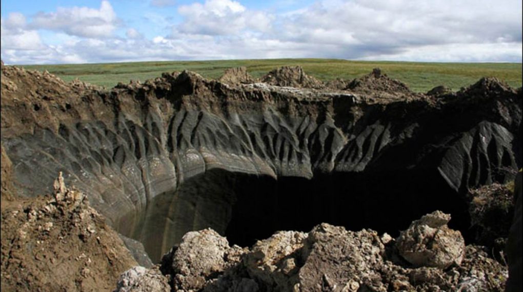 Se atribuye a la rápida fusión del permafrost. El permafrost es la capa de terreno, situada bajo la capa de suelo activa, que se encuentra permanentemente congelada. Tiene una edad geológica de unos 15.000 años y se encuentra en las regiones más frías del planeta.