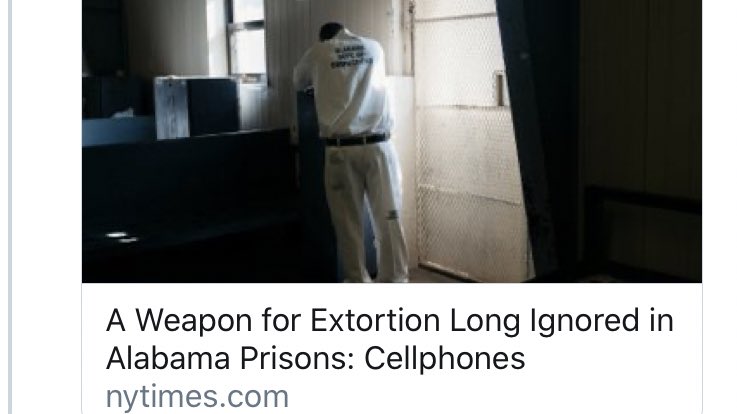 NYT w/ in-depth look at how people—they call them “inmates”—hurt each other in Alabama’s prisons bc of cellphones. Make only passing reference to conditions that lead to desperation. Give corrections the floor to suggest answer is *vastly more money to prisons & officer salary.*