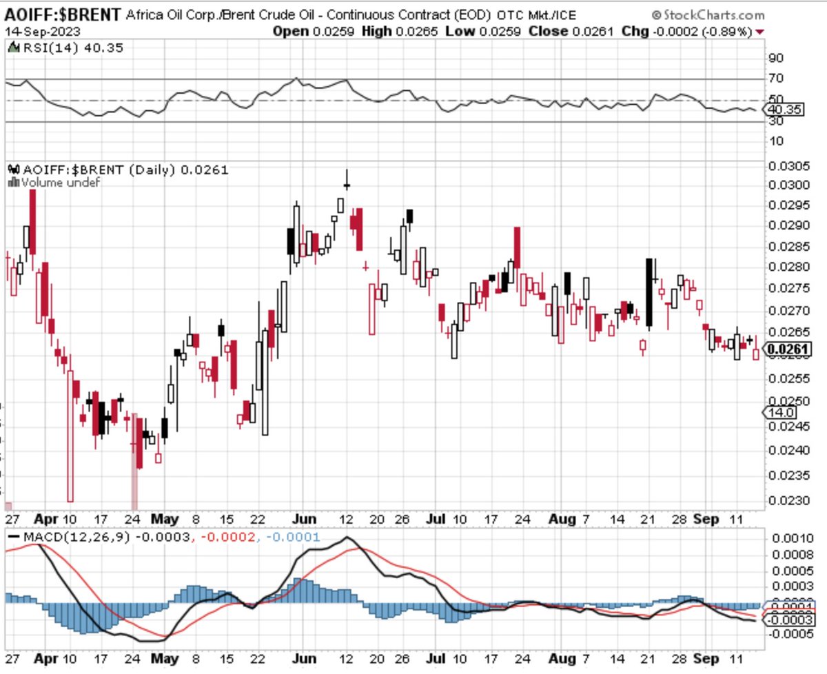 Let's do a little E&P security review, shall we? First, have a look at this sorry little chart. Africa Oil shares have been lagging Brent crude in a rising market. What happened to operating leverage? The stock is moribund. $AOI $AOIFF