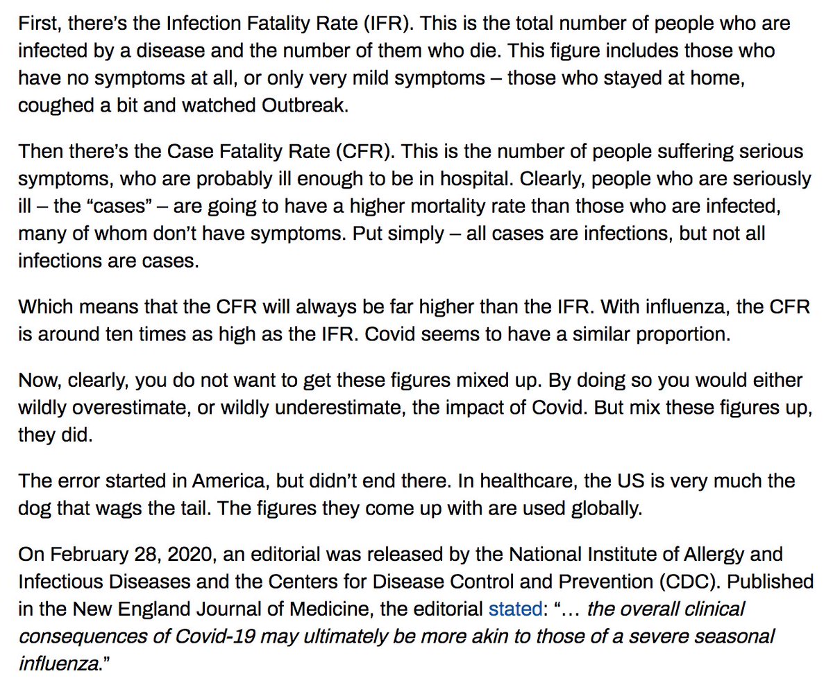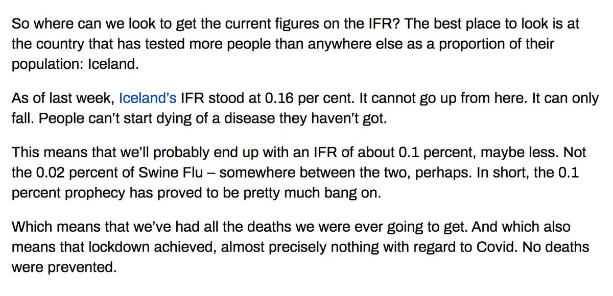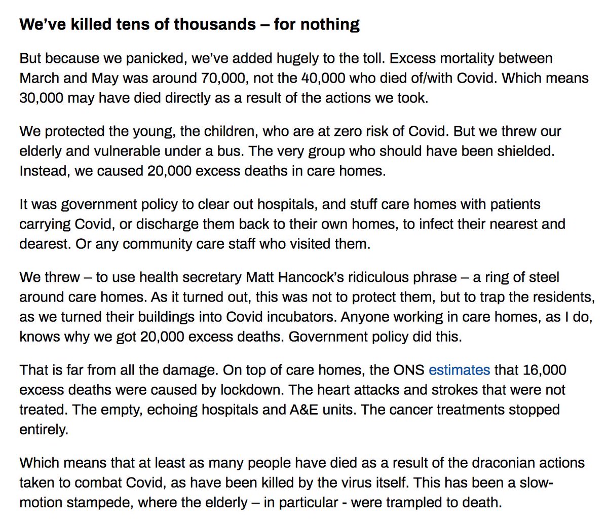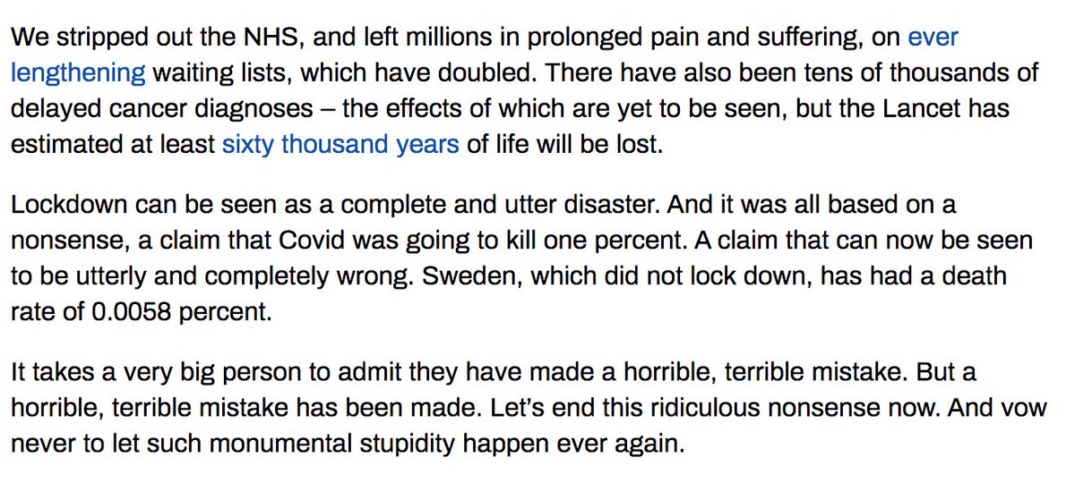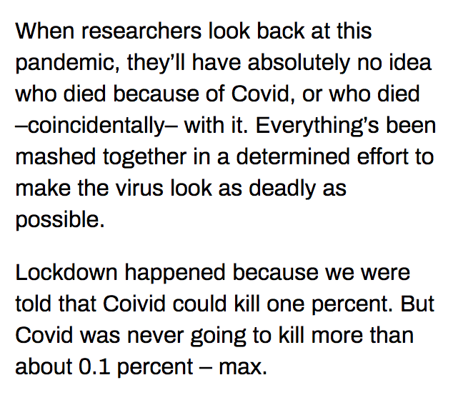 Lockdown can be seen as a complete and utter disaster. And it was all based on a nonsense, a claim that Covid was going to kill one percent. A claim that can now be seen to be utterly and completely wrong.