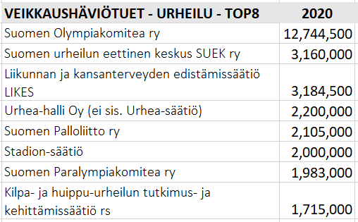 Älykäs kysymys olisi ollut vaikka selvittää miten urheilun 41 milj € pienenevää pottia voisi allokoida tuloksellisemmin.