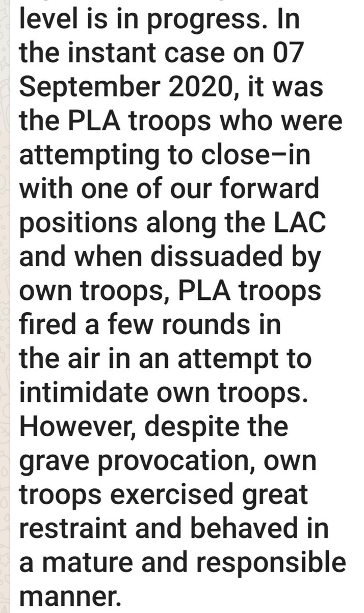 Chinese Troops tried to close in on one of India's forward positions at #LAC on Sept 7. #PLA troops opened fire in an attempt to intimidate but India exercised restraint. Army statement in response to Chinese Western Theatre Command claims of Indian Army opening fire in #Ladakh.