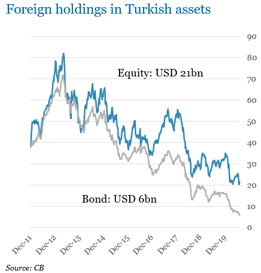 Reversing this trend will not be easy in an environment where market participants show zero tolerance to policy mistakes due to Covid-19 stress (EM-context) and given lack of tourism $$$ (Turkish context).